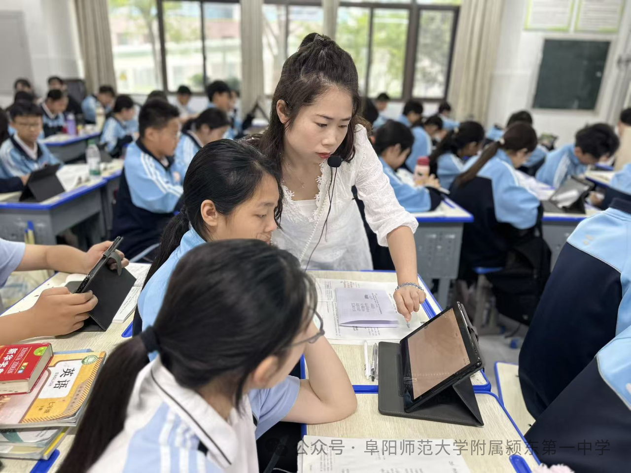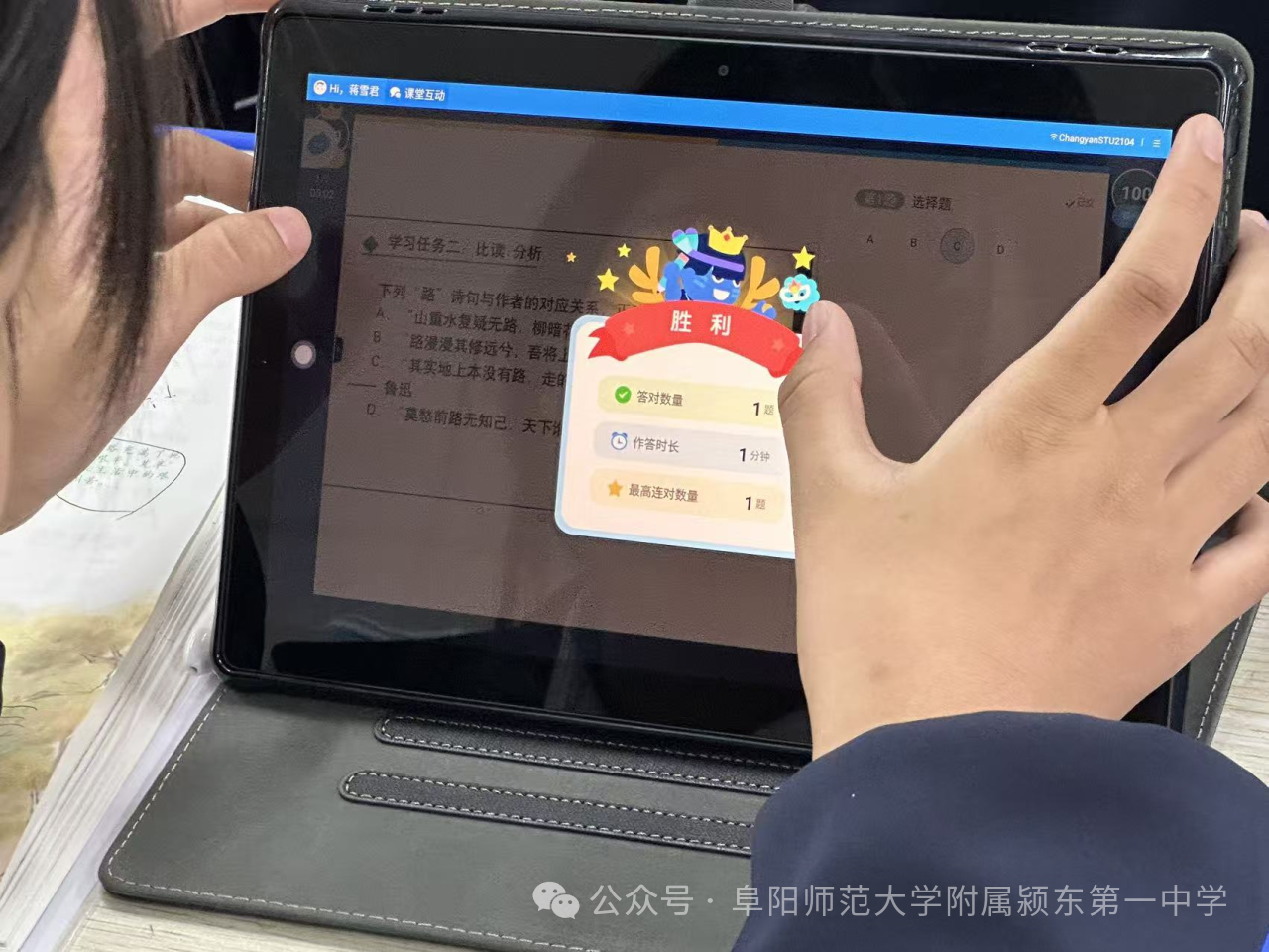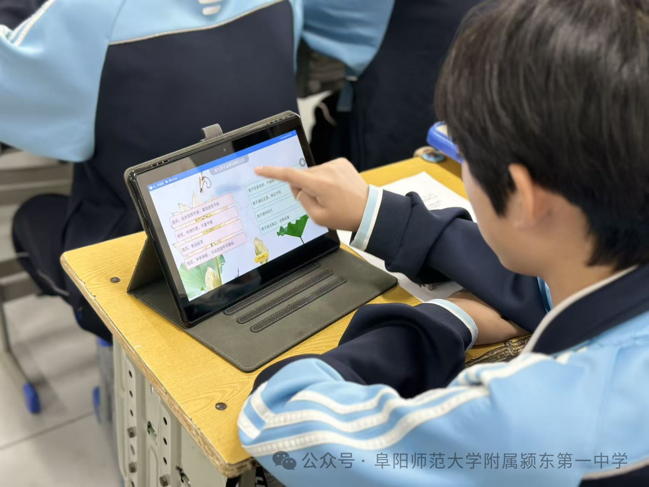 阜阳师范大学附属颍东第一中学教师郑孝茹执教《爱莲说》,郑老师巧妙运用智慧课堂平台,实时互动问答、小组讨论即时投屏、作业精准点评等数字化手段轮番上阵。课堂上,学生们轻点平板,积极参与“莲之品格”互动答题。教师实时抓取、分析数据,动态调整教学重点,将莲花“出淤泥而不染”的高洁品格借助现代技术生动诠释,让传统文化在指尖“活”起来,极大提升了学生的参与度和文化感悟力。