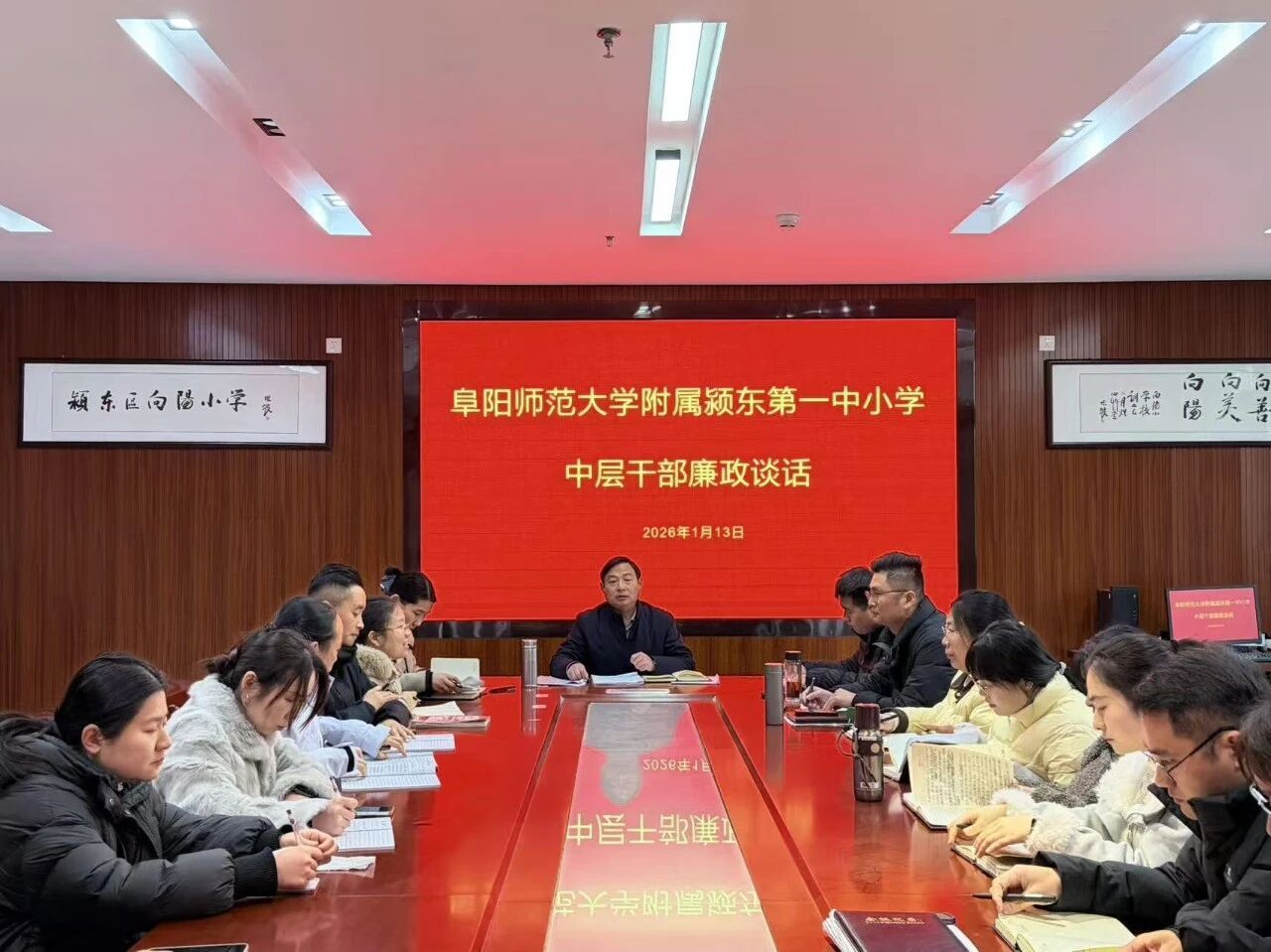 为进一步筑牢党风廉政建设思想防线,切实增强学校管理干部廉洁自律意识,1月13日,阜阳师范大学附属颍东第一中学、第一小学分别组织开展学校班子成员和中层干部廉政谈话。会议由学校党支部书记、校长李向前主持,学校班子成员和中层干部分别参加了谈话。