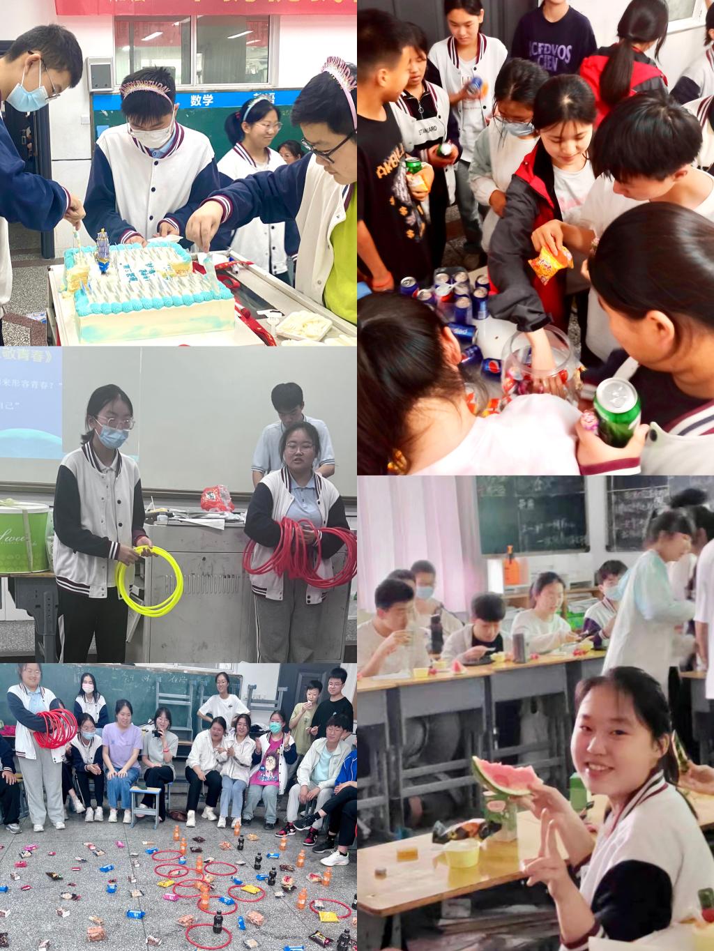 班会课之后,活动继续开展,解压的小游戏舒展了孩子们的身心,优美的舞姿展现了孩子们的青春热情,精彩的说唱诉说着孩子们对未来坚定的信心,精心缝制的荷包传达着孩子对未来美好的祈愿。家长和班主任精心准备的蛋糕、水果和各种零食等使孩子们无比开心。种种花样心理辅导帮助孩子们降低了焦虑情绪,增强了迎战中考的信心。
