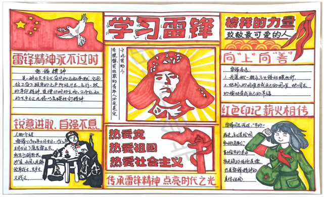 七八年级的同学们紧扣“传承雷锋精神”主题,发挥创意,用绚丽色彩和生动文字展现对雷锋精神的理解,设计新颖、内容积极向上。一张手抄报,方寸之间见天地;一颗少年心,笔墨之中显情怀。这些作品不仅是色彩的盛宴、文字的舞蹈,更是新时代青少年对雷锋精神的深情告白。