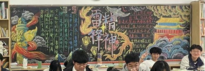 高一、高二年级以班级为单位,以“学习雷锋精神”为主题开展黑板报设计擂台赛,设计精心、内容丰富、布局合理,展现出班级特色与合作精神。设计板报的过程中,学生深入了解雷锋事迹与精神内涵,增强了社会责任感与奉献意识。