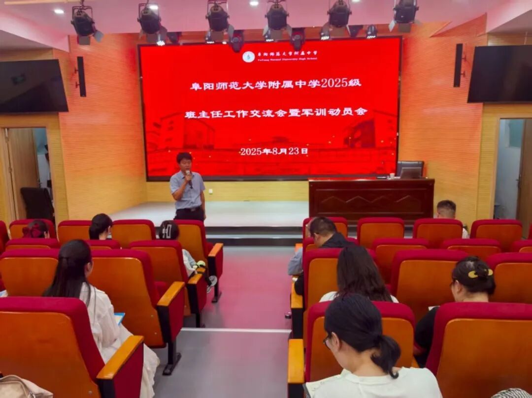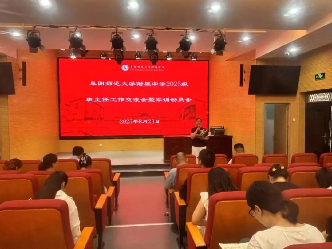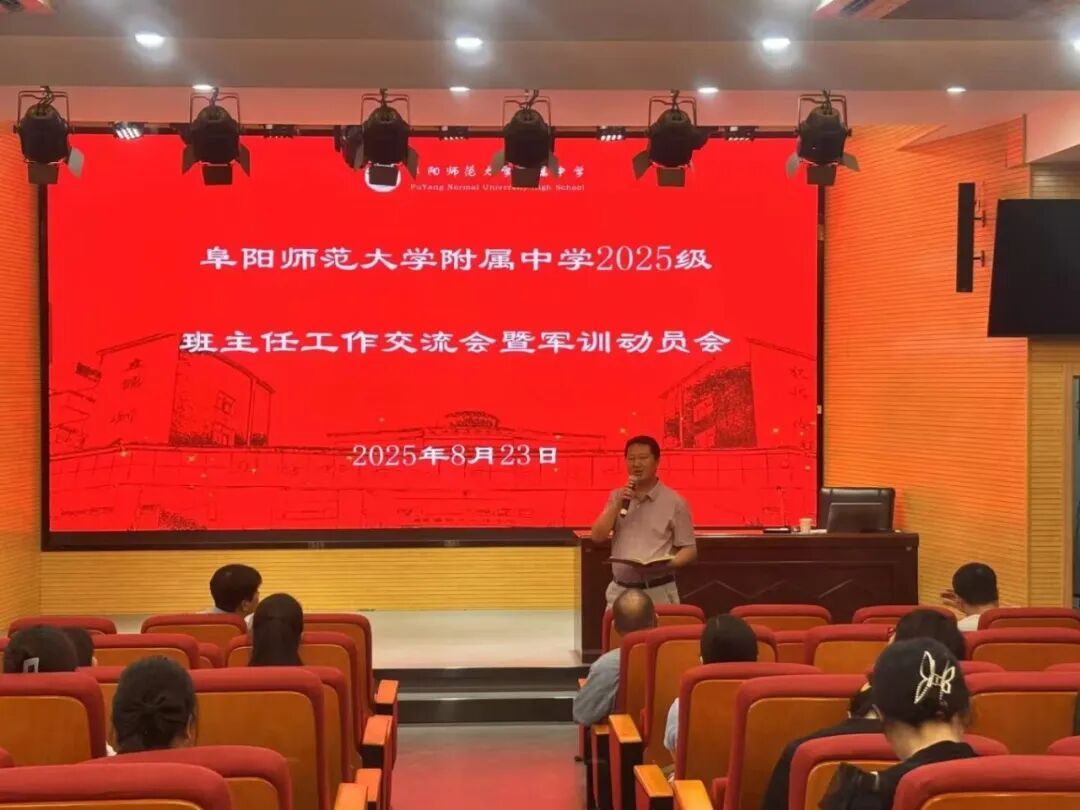 为扎实推进我校2025级新生军训工作有序开展,明确新生入校后班级管理要求,8月23日,阜阳师范大学附属中学召开2025级班主任工作交流会暨军训动员会。会议由学生发展中心副主任郑艳主持,教育集团党委书记徐升、校长方帅军,以及2025级七年级、高一年级全体班主任和军训值班教师参加了本次会议。