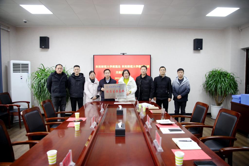 1月9日,阜阳师范大学招生就业处处长方强、副处长高蕾等一行来教育集团考察交流并共同为“阜阳师范大学优质生源基地”揭牌。教育集团总经理、附中校长高家芳,副总经理、附中副校长方帅军等参加会议。