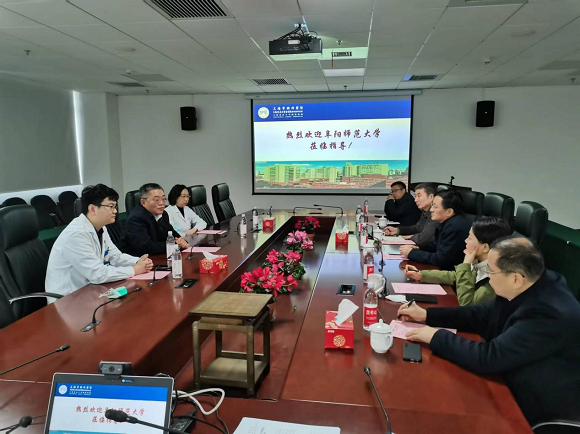 于永春介绍了医院的历史、临床特色和发展规划,徐蕾介绍了医院的教学和科研情况。刘玉祥介绍了医学院的创建历史、专业建设、教学科研和专业申报等基本情况,说明了此次调研的目的,希望双方能够优势互补,深化医学检验技术和护理本科专业、以及未来研究生培养的教学实习合作,期待通过此次调研交流,能够进一步拓展学校在江浙沪地区教学基地的数量,为未来的教学实习和研究生培养拓展教学资源。马同富介绍了学校的基本概况、学科特色、研究生招生等情况,重点阐述了建立高质量发展的医学院的发展规划。张艳介绍了阜阳地区的人口、教育和医疗资源等情况,以及创建国家级区域医疗中心的阶段性工作,并真诚地邀请胸科医院领导到阜阳进行合作。