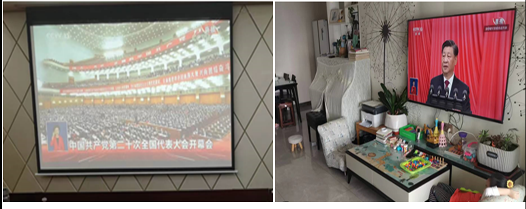 结合当前疫情防控的形势和工作要求,校友办及教管处党支部组织全体党员通过集中观看和自行观看相结合的方式,认真收听收看党的二十大开幕会直播。