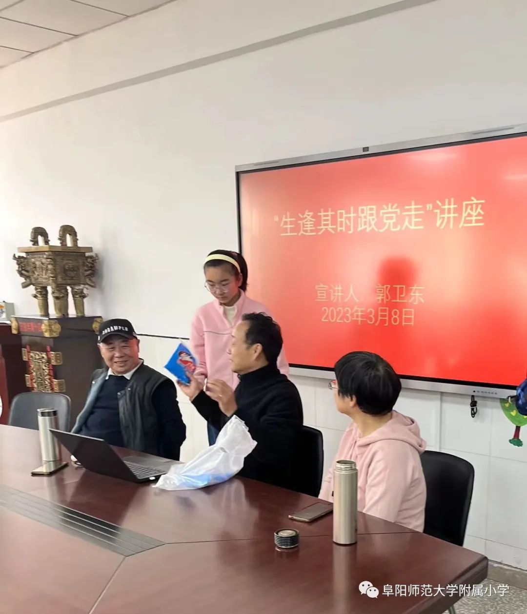 党的二十大是在全党全国各族人民迈上全面建设社会主义现代化国家新征程、向第二个百年奋斗目标进军的关键时刻召开的一次十分重要的大会。为全面贯彻落实党的二十大精神,3月8日,原附中校长郭卫东带领二十大精神宣讲团成员朱茱老师和刘运浩老师走进阜阳师范大学附属小学,开展党的二十大精神宣讲进校园活动,为六年级孩子们呈现一节别开生面的思想政治教育课。