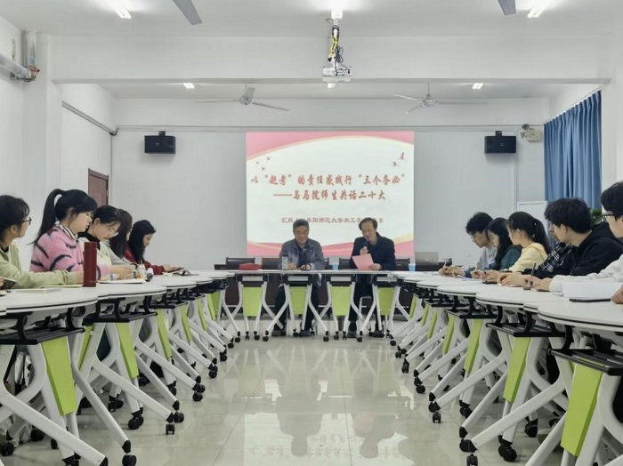 学生代表结合专业特色,交流了学习党的二十大报告的心得体会。21级思政1班班长唐成表示,当代青年生逢盛世,应当做“有理想、敢担当、能吃苦、肯奋斗”的新时代好青年。21级思政2班团支书唐凌雯表示,作为青年一代的我们要敢担当,在这个奋斗者的时代自信自强、守正创新、勇毅前行,用实际行动践行好“请党放心,强国有我”的誓言。