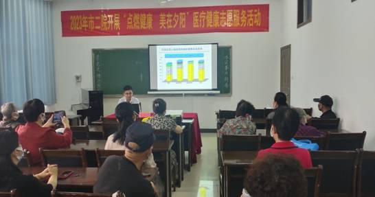 活动分两部分进行,讲座和现场测量血压、心率筛查。韦德宇主任主要从高血压的形成机制及对人体造成的危害等方面展开讲解,最后重点引导大家要合理膳食、科学运动,倡导大家树立正确的生活观念,并给出了具体可操作性的做法,从而减少高血压及其并发症的发生,保障有质量的健康生活。