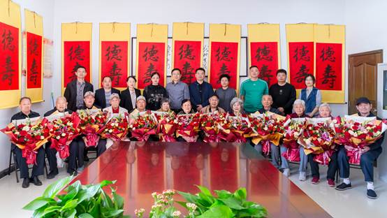 10月23日上午十点,秋高气爽,丹桂飘香,正值九九重阳佳节,我校隆重举办敬老爱老活动。十六位八十高龄的老同志陆续来到老年活动中心会议室。会议室内鲜花绽放,四周挂满书写着 “德寿”的条幅,桌上摆放着生日蛋糕。老人们见到昔日的老友精神分外舒畅,相互问候,脸上洋溢着幸福的笑容。