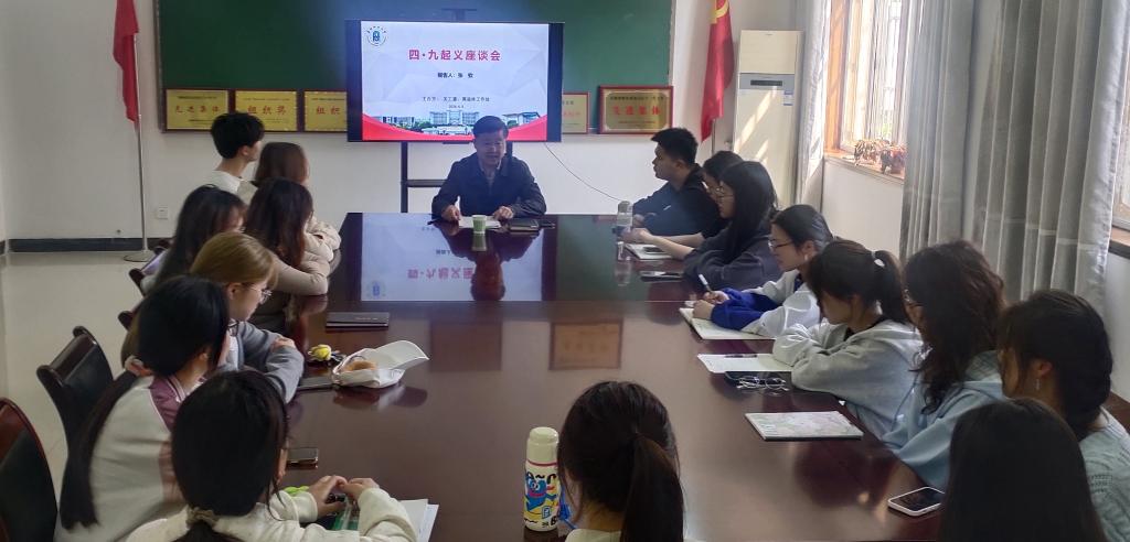 张钦副主任首先讲述了1928年4月9日皖北阜阳爆发武装起义的历史背景、起义过程和起义意义。四九起义是继南昌起义、秋收起义、广州起义后,党领导的工农兵起义之一,建立了安徽省第一个苏维埃政府,成立了黄淮平原上第一支皖北工农红军,凝铸了“坚定忠诚的革命精神,团结拼搏的开创精神,无私奉献的牺牲精神,百折不挠的畚斗精神”的四九精神。起义虽然历时不久,但它点燃的革命烈火燃遍了黄淮大地,创造了以后的鄂豫皖苏区。然后指出现在的青年正生逢其时,正是中国式现代化过程的参与者、建设者、见证者。对同学们寄予了殷殷期盼。