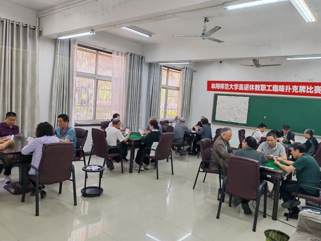 5月14日,离退休工作处在清河校区蓝天楼棋牌室举办了校离退休老同志“掼蛋”比赛。此项目深受老同志们的喜爱,参与者众多,经过一天的角逐,比赛圆满结束。