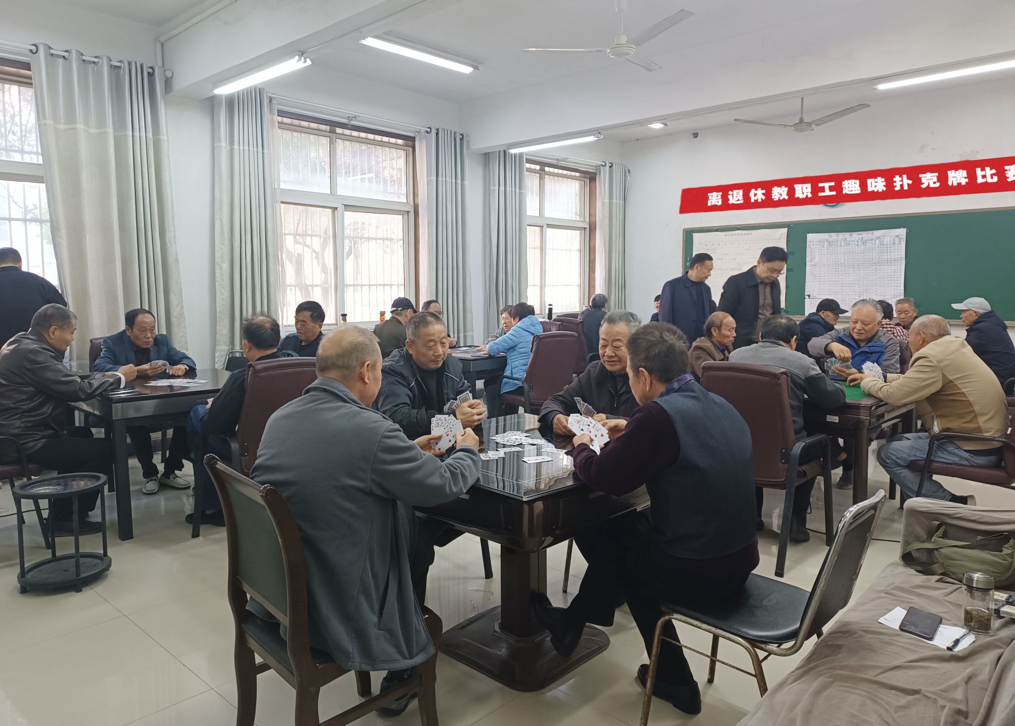 10月22日,离退休工作处在清河校区蓝天楼棋牌室举办了校离退休教职工趣味扑克牌比赛。此项目深受老同志们的喜爱,参与者众多,报名人数达到50人。经过一天的角逐,比赛圆满结束。