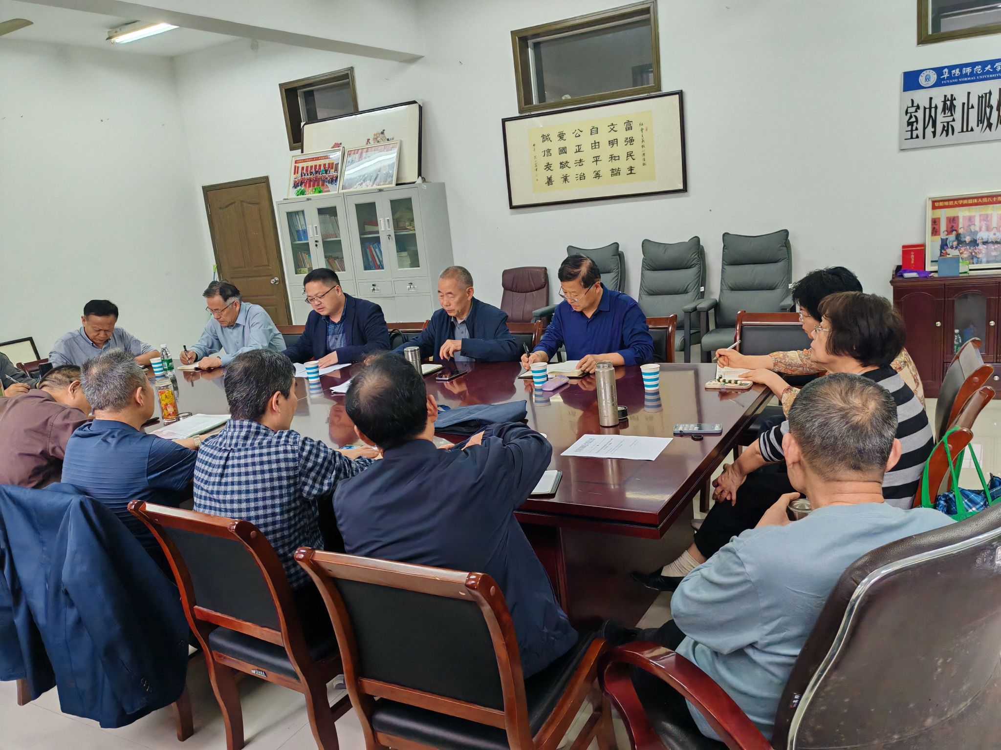 为深入贯彻落实学校党政工作部署,扎实推进我校关心下一代工作,2025年4月11日下午3时,校关工委在离退休工作处二楼会议室召开近期工作部署会议。会议由校关工委常务副主任郑禹主持,全体关工委委员和离退休工作处处长高奇志等出席会议。会议特别邀请校团委书记杨劲同志作专题报告。