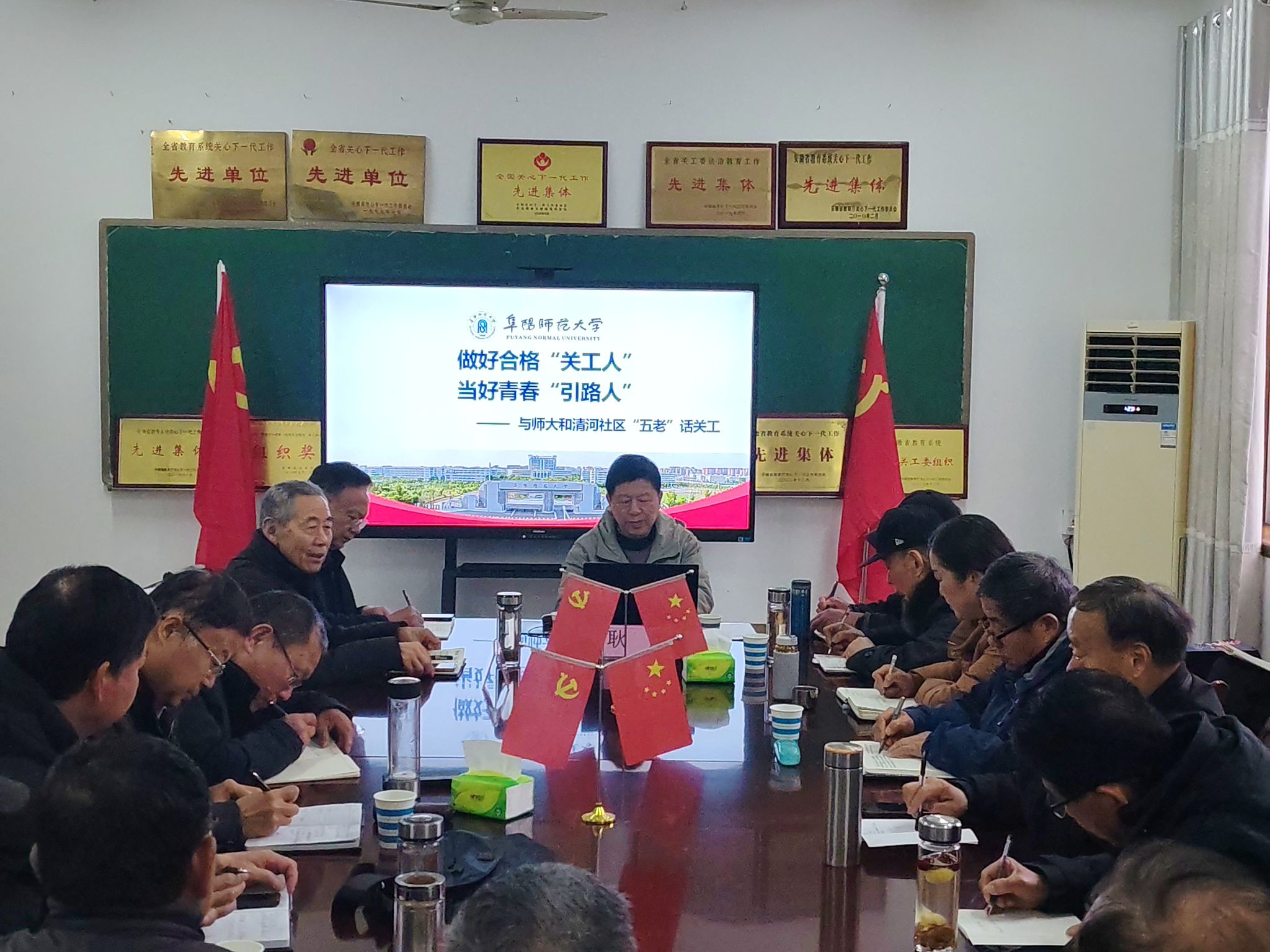 为深入学习贯彻树立和践行正确政绩观要求,深化校社关工联动,推动关心下一代工作走深走实,3月17日下午,我校关工委特邀阜阳市关工委常务副主任、全国关心下一代工作先进工作者耿霖,作《做好合格关工人,当好青春引路人》专题报告,我校及清河社区全体关工工作者共同参会学习。