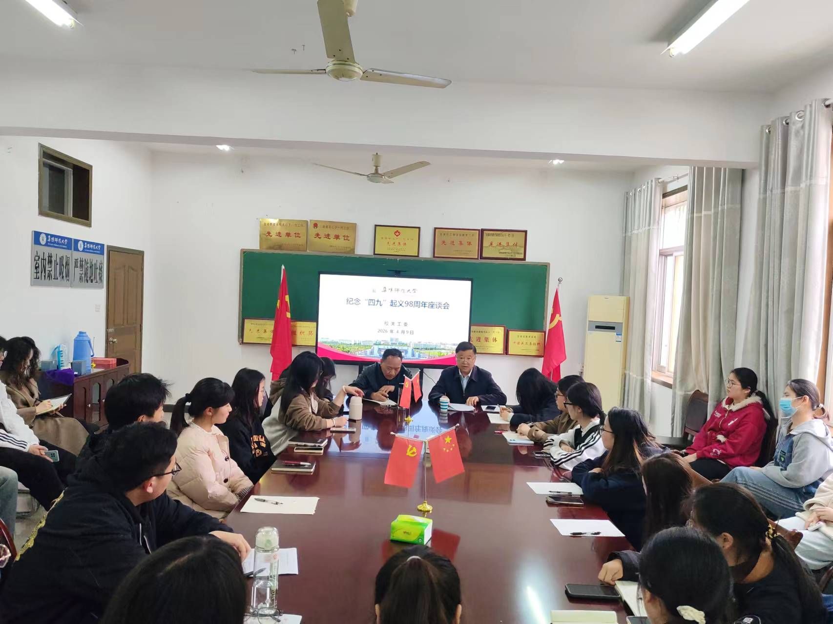 为缅怀革命先烈,传承红色基因,厚植青年学子爱国情怀,4月9日下午三点,校关工委在清河校区蓝天楼203会议室举办了纪念“四˙九”起义98周年座谈会。会议由校关工委副主任张钦主讲,关工委委员田修魁和经济学院入党积极分子代表参加了座谈。