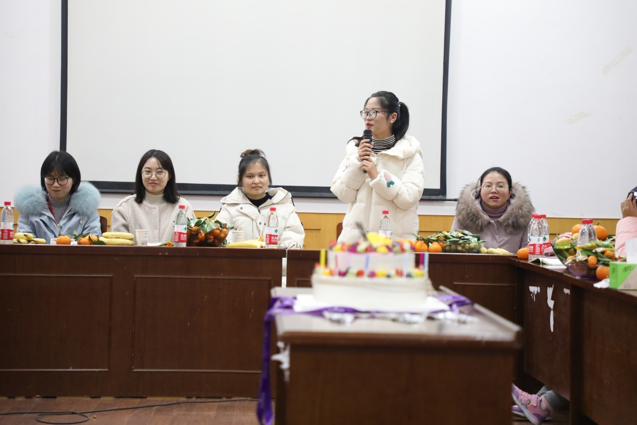 “寿星”代表食品系李双芳老师、经济管理系马楠茜老师分别分享了自己的生日感言,称很激动、也很感动学院组织大家一起过集体生日,这是迄今为止自己最有意义的一个生日,也真真切切的感受到了来自集体的温暖。并表示今后的工作中将继续立足岗位做贡献,落实立德树人根本任务,争做一名“四有”好老师。