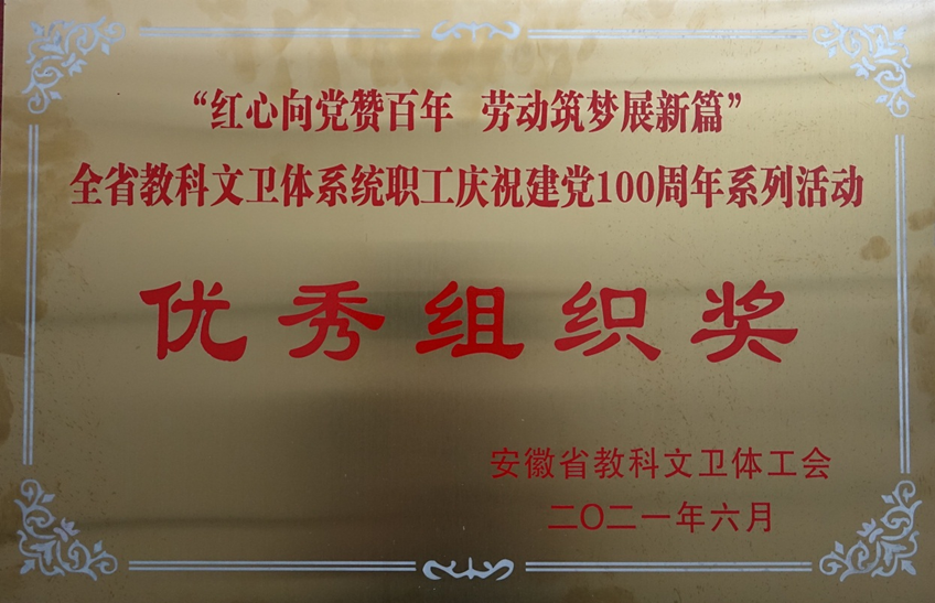 近日,我校在省教科文卫体工会举办的“红心向党赞百年劳动筑梦展新篇”庆祝建党100周年系列活动中荣获“优秀组织奖”。