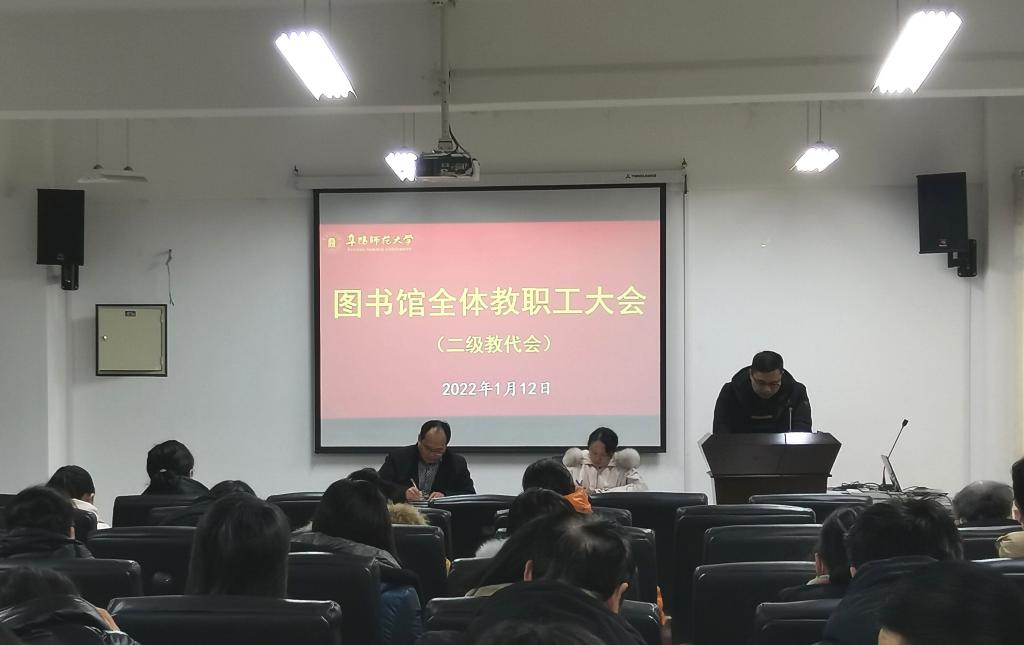2022年1月12日下午,图书馆第一届教代会第二次会议在正行楼315会议室胜利召开。本次教代会应到正式代表56人,实到51人。会议由图书馆党总支书记梁长武主持。