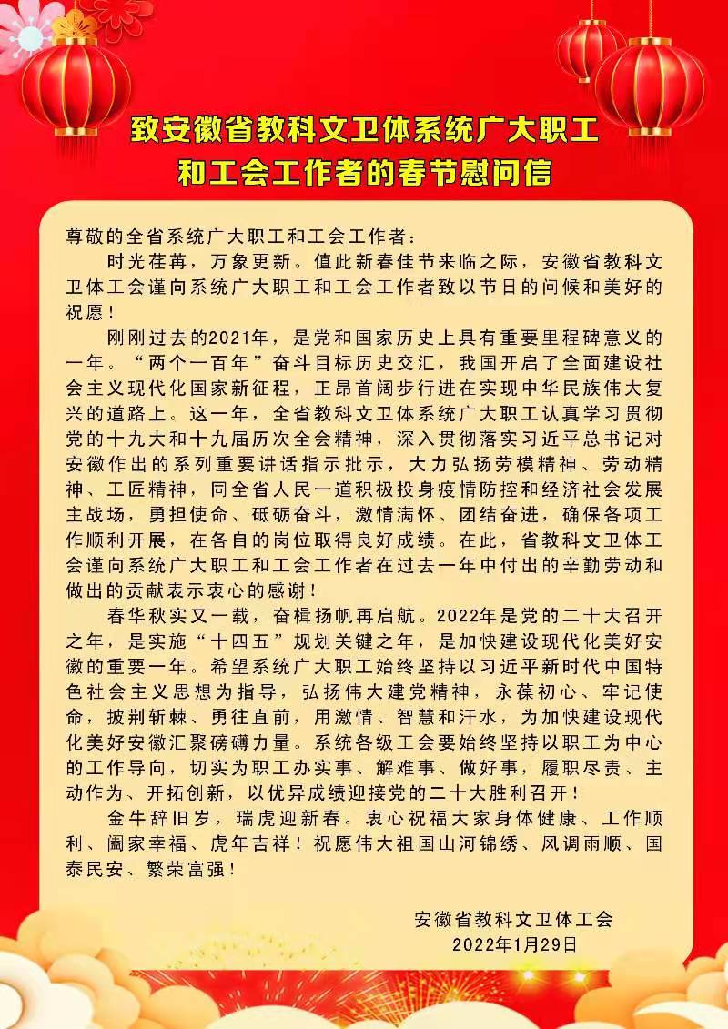 省教科文卫体工会致全省系统广大职工和工会工作者的春节慰问信