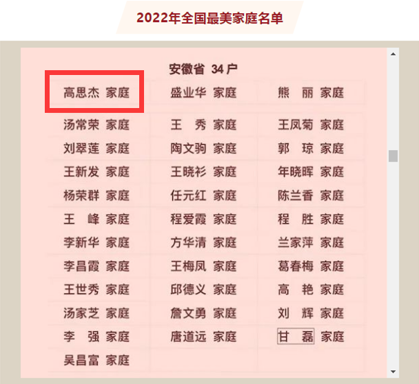 在5月15日国际家庭日来临之际,全国妇联揭晓997户全国最美家庭。这些家庭积极培育和践行社会主义核心价值观,体现了爱国爱家、相亲相爱、向上向善、共建共享的社会主义家庭文明新风尚,展现了新时代家庭良好精神风貌,在厚植家国情怀、传承优良家风、弘扬文明新风方面树立了标杆、作出了表率。我校马克思主义学院党委书记高思杰家庭以安徽省排名第一的名次入选全国最美家庭。