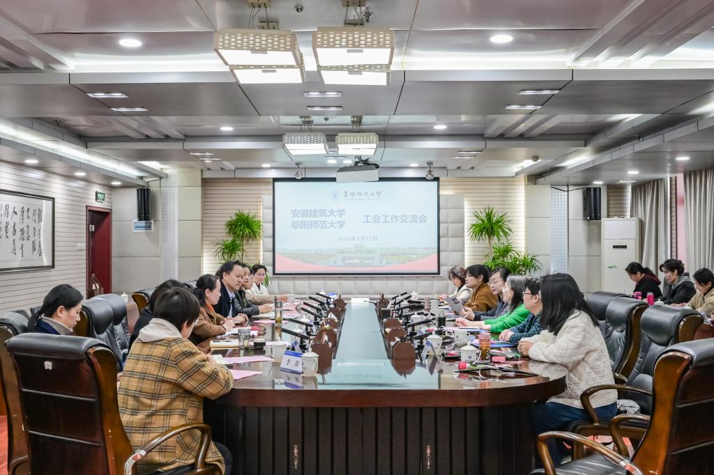 为推进新时代高校工会工作高质量发展,进一步加强学习交流,3月12日下午,安徽建筑大学工会主席、校女工委主任胡雯一行莅临我校开展工作交流,座谈会在西湖校区正行楼1202会议室举行。校党委副书记、校长方廷勇出席座谈会,两校工会主要负责人、女工委及部分分工会相关工作人员参加座谈会。座谈会由我校工会主席魏文霞主持。