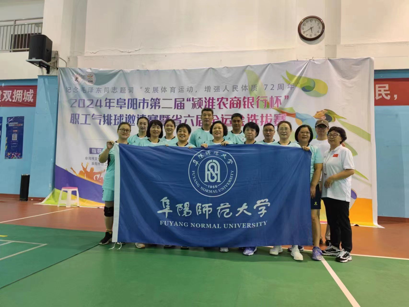 6月29日至30日,2024年阜阳市第二届职工气排球邀请赛暨省全运会选拔赛,在颍东区全民健身中心开赛。竞赛采取男女混合赛(三男二女)形式。参赛队伍分别来自各市、县气排球协会(俱乐部)、大中专院校、企事业单位等。我校气排球协会选派出两支队伍参加了比赛。