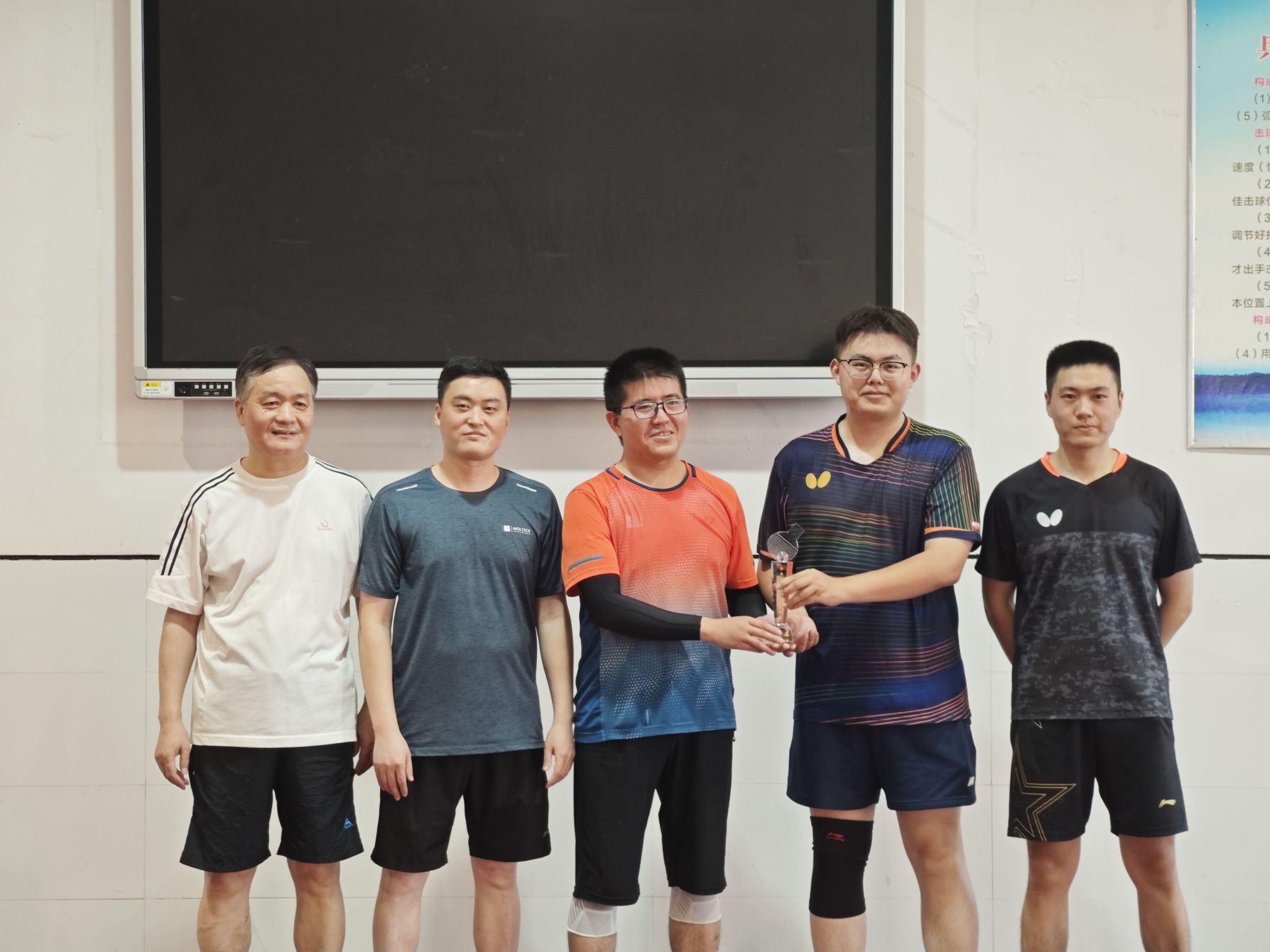 2025年6月15日,由校工会主办,校乒乓球协会、化学与材料工程学院分工会和学生会共同承办的第一届乒乓球师生混合团体赛经过一个下午的激烈争夺,圆满落下帷幕,最终,商学院代表队夺得冠军,历史文化与旅游学院和化学与材料工程学院分获二三名。校党委常委、副校长卢少求教授到现场指导,并为获得冠军的代表队颁奖。