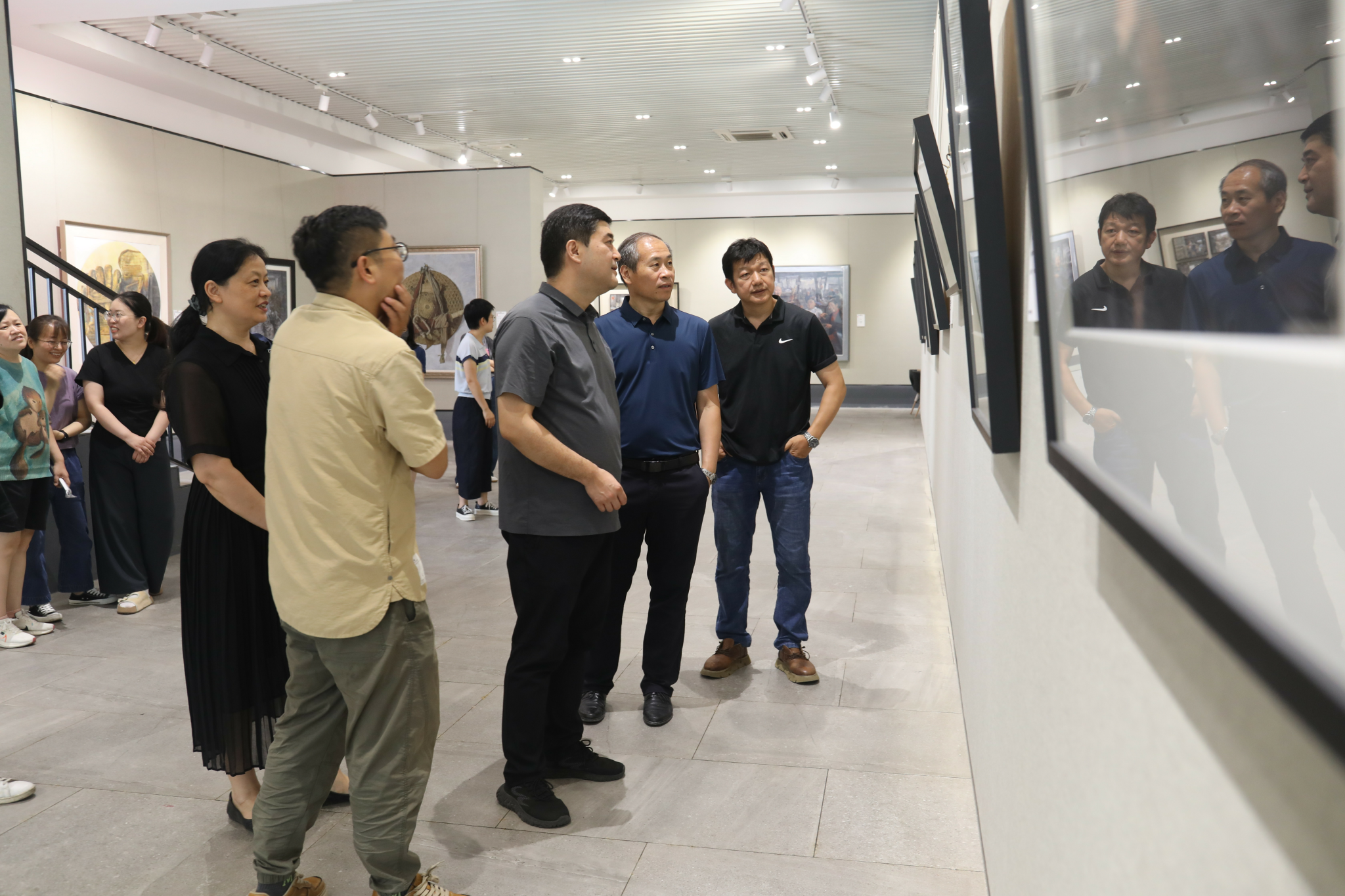 窦贤坤对此次画展的举办高度赞扬,对美术学院教师关于主题性创作的成果充分肯定。他指出,作品的精神性引领对于学校美育工作的重要性,并鼓励师生继续坚持作品的思想性,创作更多的优秀作品为学校建设高水平师范大学做出贡献。