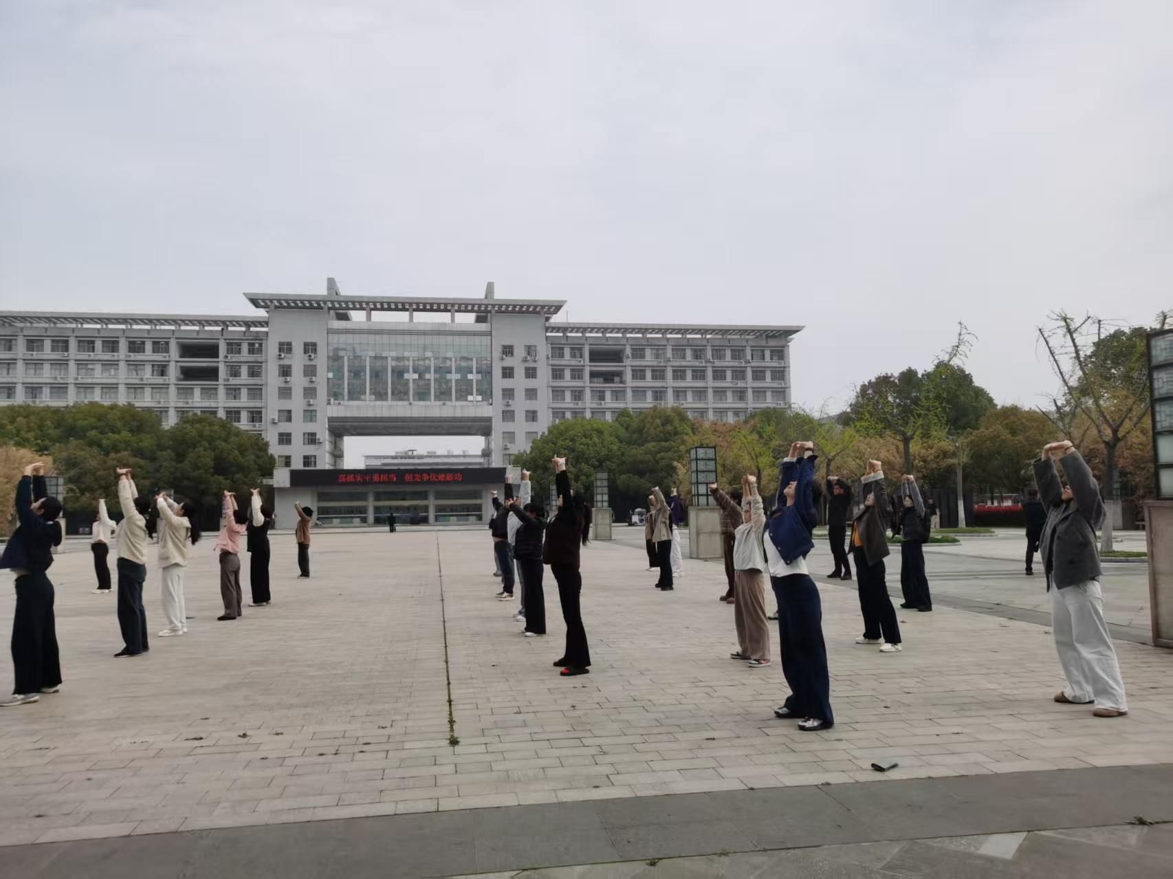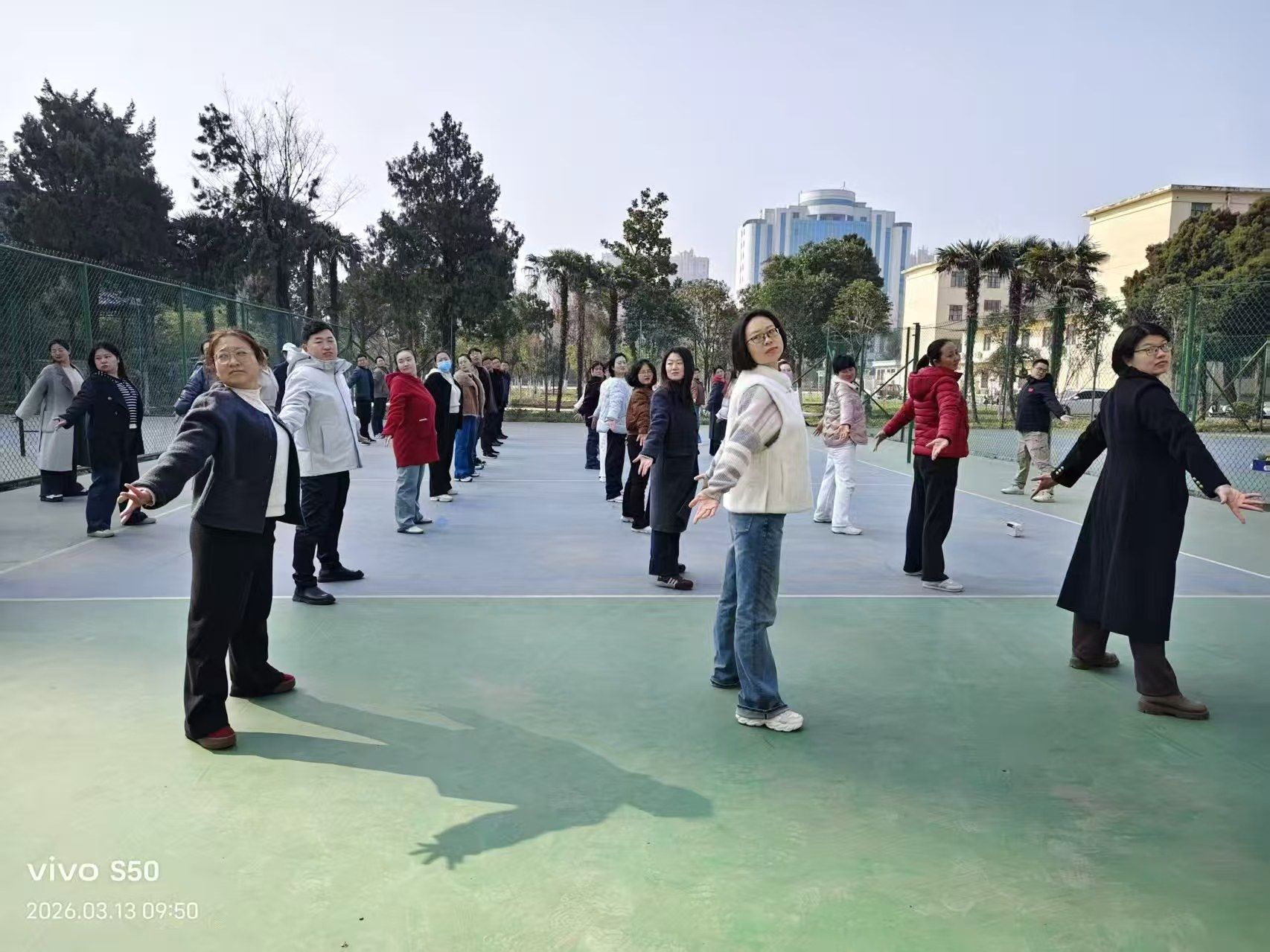 为积极响应省教科文卫体工会号召,倡导“快乐工作、健康生活”理念,3月13日,校工会组织近500名教职工开展“工间一刻 锦动健康”主题活动。各分工会结合工作实际,在办公区、会议室、室外广场等场所灵活组织教职工分散练习八段锦,在舒缓的音乐中舒展筋骨、调养气息,有效缓解了久坐伏案带来的肩颈疲劳与工作压力。