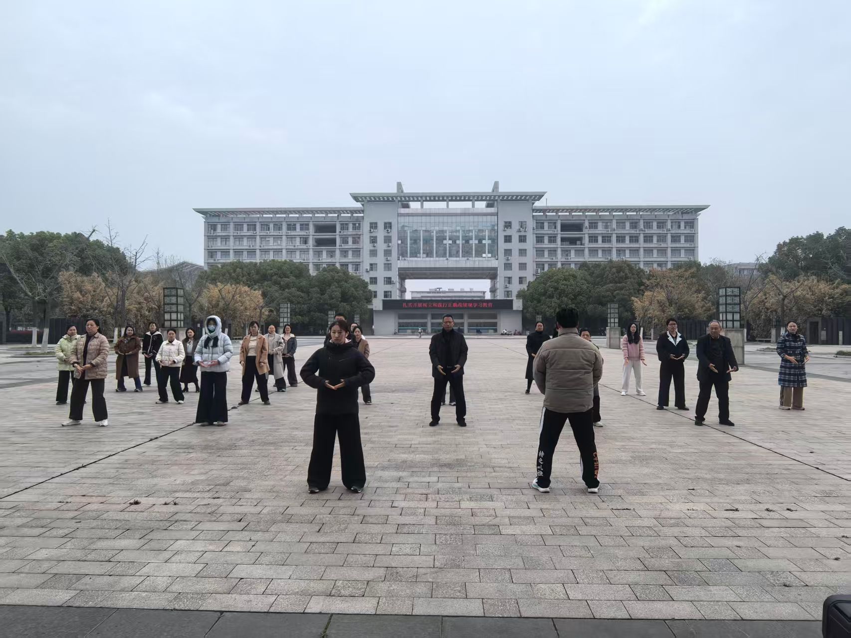 在此基础上,校工会联合机关党委向机关全体教师发起工间操活动倡议,于工作日上午大课间在正行楼前集中开展八段锦练习,由专业教练现场带练指导。活动自启动以来已连续举办多日,教职工参与热情持续高涨,在传统养生功法的习练中强健体魄、放松身心,形成了浓厚的健康锻炼氛围。