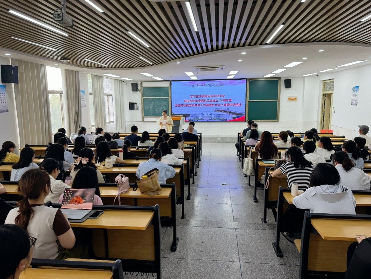 5月7日下午,外国语学院举行教职工专题理论学习会,传达学习习近平总书记在庆祝中华全国总工会成立100周年暨全国劳动模范和先进工作者表彰大会上的重要讲话精神。学院党委班子、全体教职工参加会议。会议由学院院长赵从义主持。