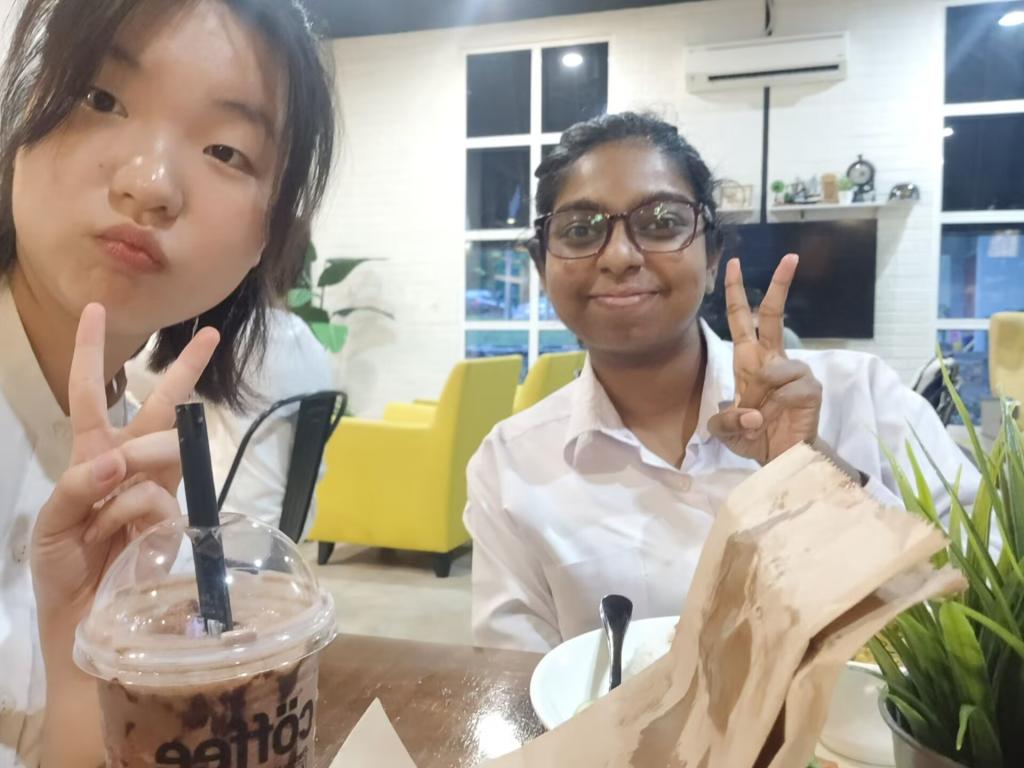 至于在学校里就发生了更多有趣的事情。例如在一门英语表演课上,我和几个女孩组成了一个英语表演小组。其中有几个马来西亚本地女孩,还有一个可爱的印度姑娘和一个明媚的中国姑娘,虽然语言沟通不畅,再加上我不是学习这个专业的,作为一个外来的新人,她们热情地帮助我,指导我,让我快速地融入了以前从未接触过的学习与组合氛围中。我们在一起编排剧本,分配角色,排练剧情,练习台词,从一开始的陌生胆怯逐渐变得开怀,也能毫无顾忌地坐在地上和组员们一起说说笑笑。