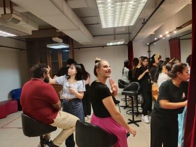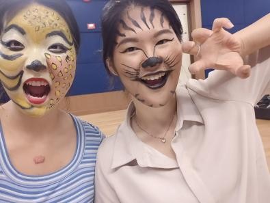 令我最有印象的是一门舞台创意妆容课,年轻风趣的老师教我们制作各种特效妆,和从未接触过的舞台上的戏剧妆容。我们两两成对,把对方的脸当成一张有温度的画布,真实地触摸对方的皮肤,因此也迅速地为彼此的友谊增温。在近距离的接触和抚摸对方的脸庞时,我们呼吸交融,眼中再也没有美丑之分,而是把对方当作一个有温度的作品。我们彼此合作,相互配合,那一刻仿佛忘记了性别、年龄、国籍,我们只是面对面坐下来的朋友,在同一间教室上课的同学,大家坐在一起相互鼓励,相互赞扬,从不吝啬美好之词,从彼此那里得到了鼓励,感受到了温暖。
