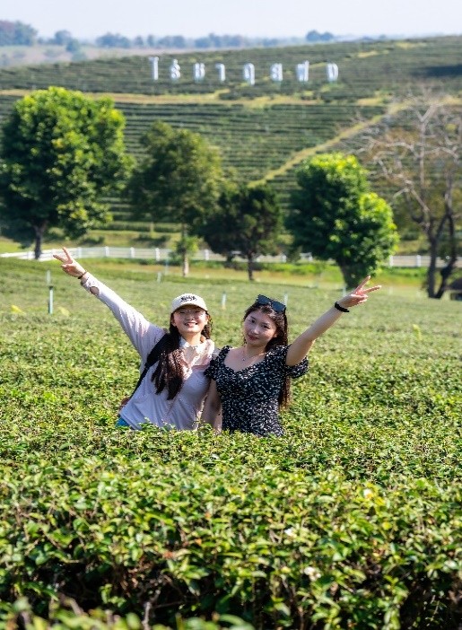 除了庙宇,我们还参观了翠峰茶园和辛哈公园(Singha Park)。翠峰茶园一眼望过去满是绿色,景色十分优美,让人有置身世外桃源的感觉。辛哈公园是一个集农业、旅游和生态保护于一体的综合性公园,公园内有茶园、湖泊和花园,风景如画,体现了自然与人文的和谐,让我感受到泰国人对自然的热爱与保护意识,也让我思考如何在现代社会中实现人与自然的和谐共处。在辛哈公园,我们还体验了索道,这是我第一次在索道上滑行,是对自己的一次巨大挑战,正如这次的研学之旅。