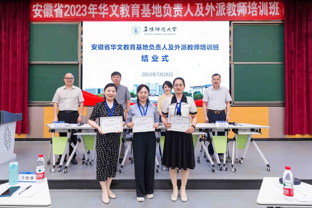 7月26日至28日,安徽省2023年华文教育基地负责人及外派教师培训班在我校西湖校区举办。校党委副书记、校长方廷勇出席并主持开班仪式,省委统战部侨务处二级调研员李光浩,阜阳市委统战部常务副部长、市台办主任、市侨办主任王显明出席开班式,我校党委统战部、文学院、国际合作与交流中心等单位主要负责人参加了开班式。2个国家级华文教育基地和23个省级华文教育基地的负责人及19位外派教师参加了培训。