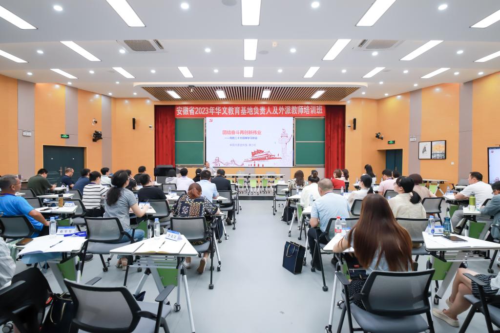 培训期间,我校文学院华文教育专家吕玲娣、魏锦虹分别以“促进中外文明互鉴,丰富华文教育教学方法和手段”“把握中华文明核心要义,做好华文教育教学资源的开发和利用”为题作了专题讲座。省委统战部侨务工作处处长李鸿雅、阜阳市特殊教育学校副校长胡晓莉等专家通过专题报告、座谈交流、课堂展示等形式,分析了海外侨情和华文教育概况,探讨了如何加强外派期间心理压力调适与情绪管理。我省历年优秀外派教师与学员们分享了各自的外派教学与工作经验,耐心解答了学员们的疑问。