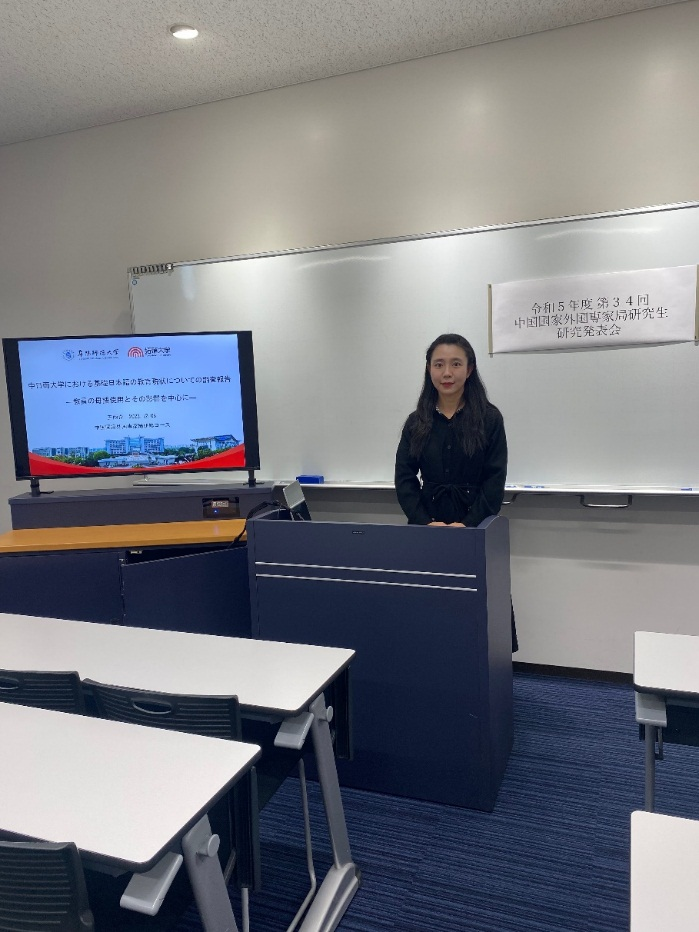 王雨奇在日本期间,认真对待研修任务,在拓殖大学选修了与日语教育相关的多门课程,并现场观摩留学生别科的日语教学,加强了对日语语言文学和日语教育学的理解。通过学习和体验不同的日语教学法,反思自己的教学实践,提高了日语教学能力与水平。研修期间,王雨奇按要求完成研修报告,并在拓殖大学研究生院进行了口头发表,获得一致好评,圆满完成研修任务。