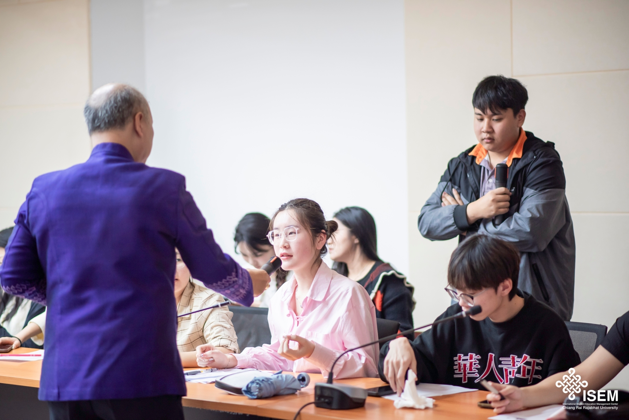 除了文化沉浸和技艺体验,学子们还参与了多场学术交流活动。清莱皇家大学苏塔副校长发表了精彩的演讲,以“团结的力量”为主题,为学子们带来了深刻的启示。国际中文教育硕士课程讲座则为他们开启了国际化的学术视野,让他们更加深入地了解了中文教育的全球发展趋势。