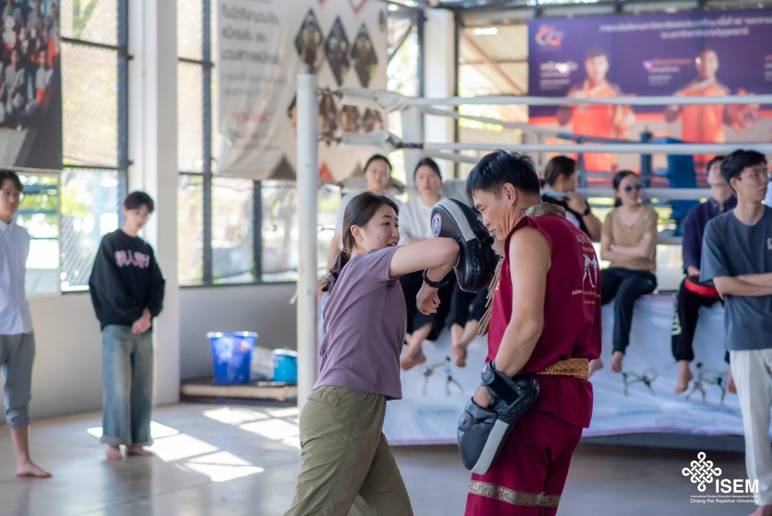 在冬令营期间,学子们亲身体验了泰拳这一泰国传统武术瑰宝。他们跟随教练学习招式,感受泰拳的刚劲有力,仿佛置身于一场激烈的武术对决中。此外,他们还参加了泰国手工花环制作课程,在老师的悉心指导下,精心编织出一个个色彩斑斓的花环,指尖灵动间,触摸泰国传统文化的细腻纹理,感受泰国文化的温暖与亲切。