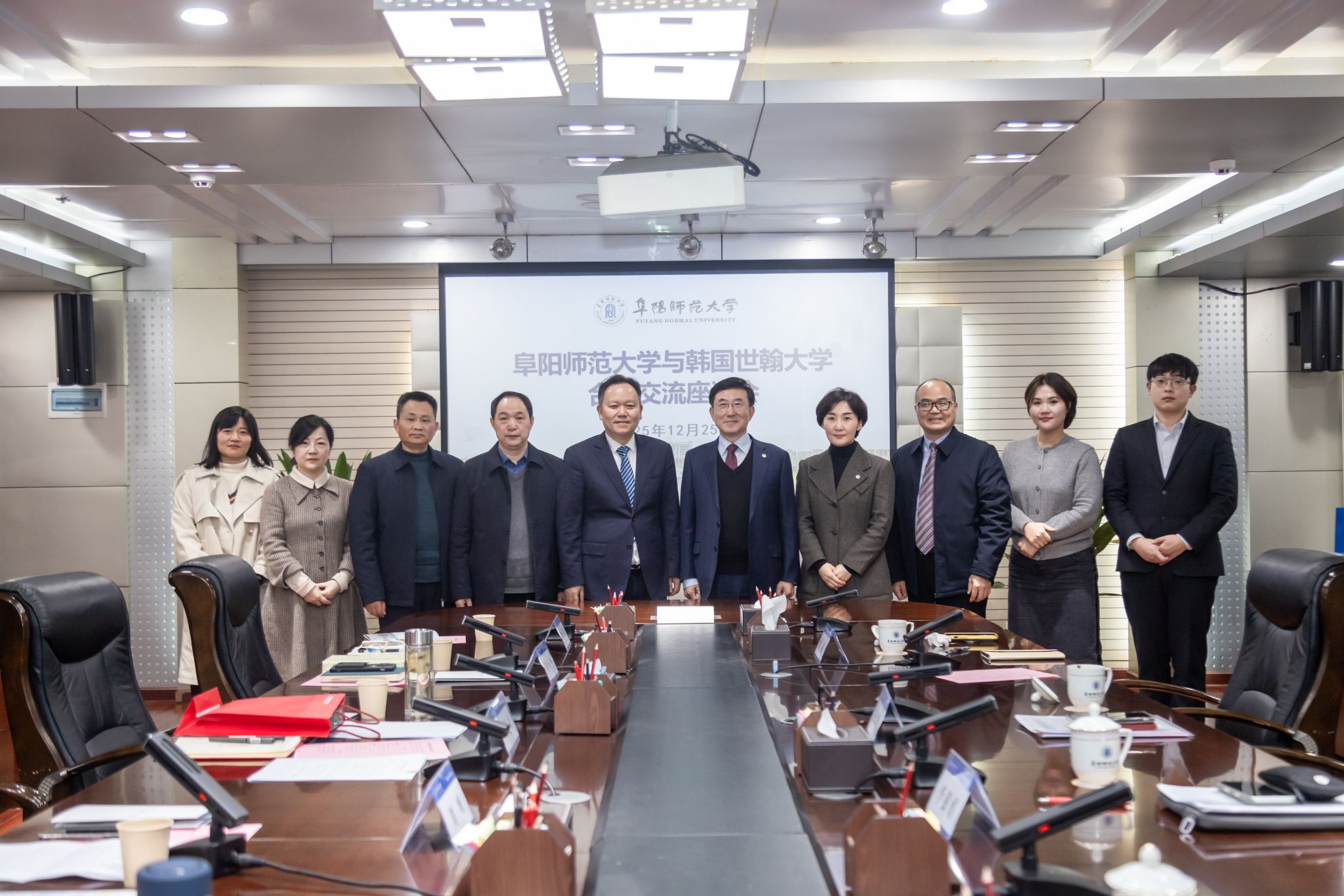 YI SUNGHOON对我校的接待表示感谢,高度评价了阜阳的文化传统与淳朴民风,同时介绍了世翰大学的办学特色与学科优势。他表示,与中国高校开展合作是世翰大学国际化发展的重点方向,期待与阜阳师范大学建立更为紧密的伙伴关系。他指出,两校在人文社科、艺术体育及理工学科等领域匹配度高、合作潜力大,希望以此次访问为契机,共同推动具体合作项目落地实施。