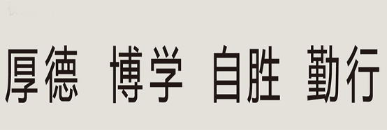 “厚德”出自《周易》:“地势坤,君子以厚德载物”,意谓:大地的气势厚实和顺,君子应增厚美德,容载万物。老子在《道德经》中指出:“修之于身,其德乃真。”强调“德”是立命、处人、治世的关键所在。以“厚德”作为校训,意在期望师生员工以“德”作为修身目标,以德立身,以德施教,以德治校。
