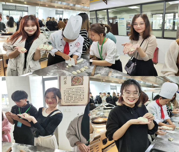 27日,留学生们前往黄山学院烹饪实训中心,亲手体验中华传统美食饺子的烹饪。