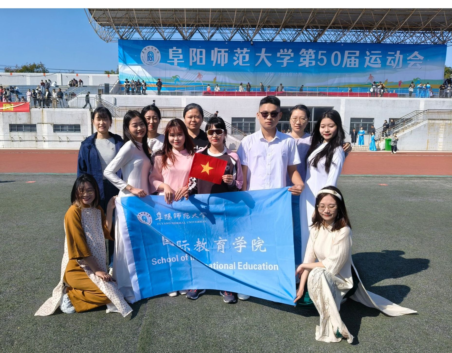 10月30日上午,2024年阜阳师范大学第五十届运动会在西湖校区风雨操场拉开帷幕。国际教育学院全体留学生到场观摩开幕仪式。他们身穿越南传统服饰——奥黛走过观众席,尽显异国风情,成为开幕式上一道亮丽的风景线。