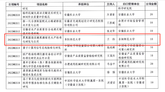 近日,安徽省市场监督管理局和安徽省科学技术厅下达了2022年质量基础设施标准化专项项目的通知,我校兰伟研究员获批“黑果腺肋花楸果酒绿色生产标准化研究与应用”项目(2022MKS13)。