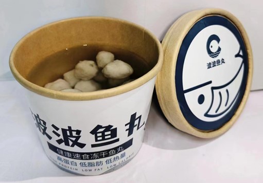 作品《波波鱼丸》是我中心与安徽豹光洄溜农业有限公司合作,探究不同冷冻干燥条件下鳕鱼丸复水性能以及口感的提升,通过添加改良剂提高冻干鱼丸的复水性能和改善鱼丸口感,研发的冻干鱼丸复水性能明显提高,且口感紧实Q弹,冻干鱼丸复水时间从5分钟缩短至2分30秒,受到企业高度认可。