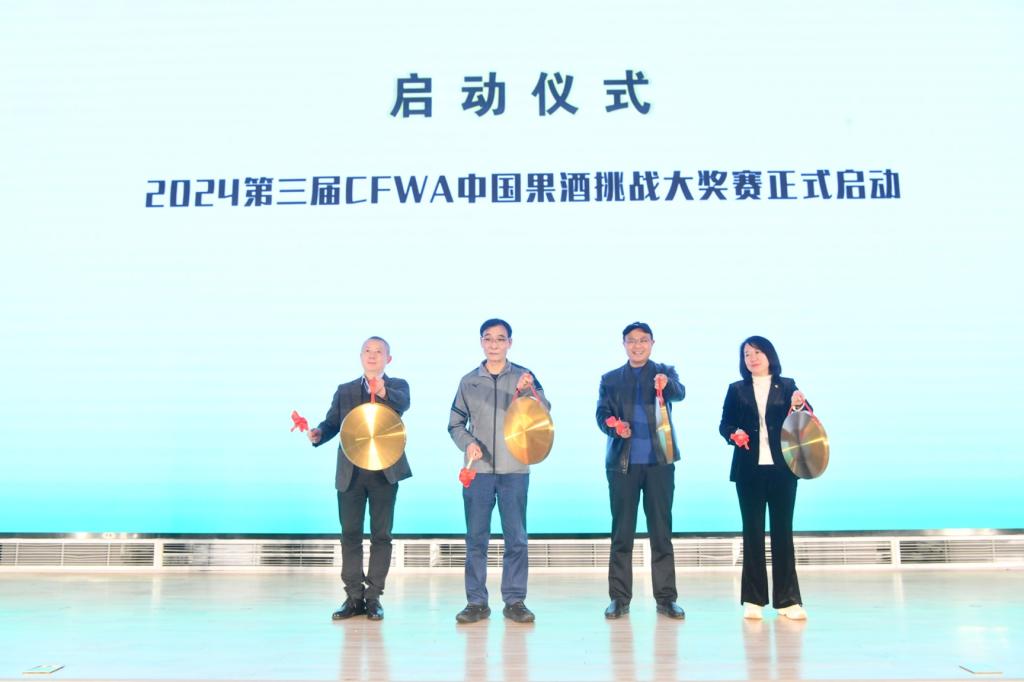 同时,在大会上,我中心兰伟研究员与第三届CFWA中国果酒挑战大奖赛承办单位领导、广东荔枝庄园酒业有限公司董事长吴汶高先生,CFWA中国果酒挑战大奖赛评委代表、四川轻化工大学生物工程学院副教授、中国酒业协会果酒技术委员会委员边名鸿女士,CFWA中国果酒挑战大奖赛组织委员会主席周劲松先生,一同以鸣锣的方式开启了2024第三届CFWA中国果酒挑战大奖赛。