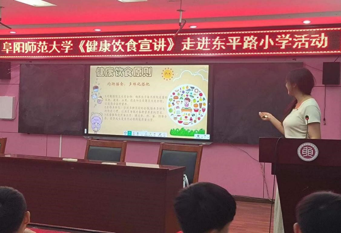 “民以食为天”每天的饮食是我们赖以生存的基础,食品是补充身体营养的最有效的途径。为进一步提升学生食品营养健康素养,2024年6月12日,我中心组织生物与食品工程学院食品质量与安全专业学生走进了颖东区东平路小学,开展了“合理营养 健康成长”为主题的小学生健康饮食宣讲活动。