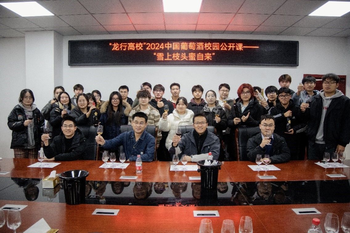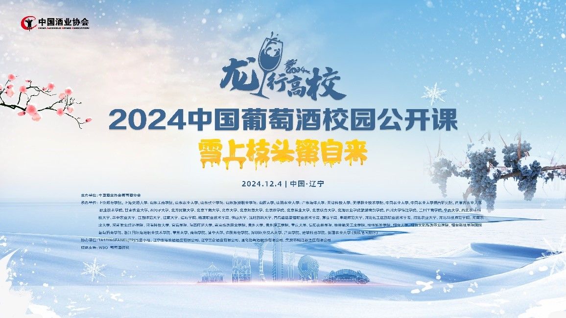 2024年12月4日,由中国酒业协会葡萄酒分会主办的“龙行高校”中国葡萄酒校园公开课——“雪上枝头蜜自来”主题活动顺利举办。本次公开课聚焦中国冰葡萄酒文化,全国66所高校师生线上线下共同参与,线上直播观看量高达9.2万人次。此次课程的主会场在沈阳药科大学,我校作为全国66所高校分会场之一,进行线上线下同步授课。
