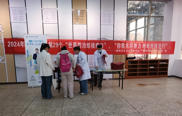 为深入贯彻党的二十大精神,倡导全社会关注结核病防治,推进学校结核病防治工作,保障师生身体健康,终结结核流行。3月22日中午,后勤服务集团(校医院)联合颍西社区卫生服务中心在西湖校区一区怡香园食堂,开展了世界防治结核病日宣传活动。