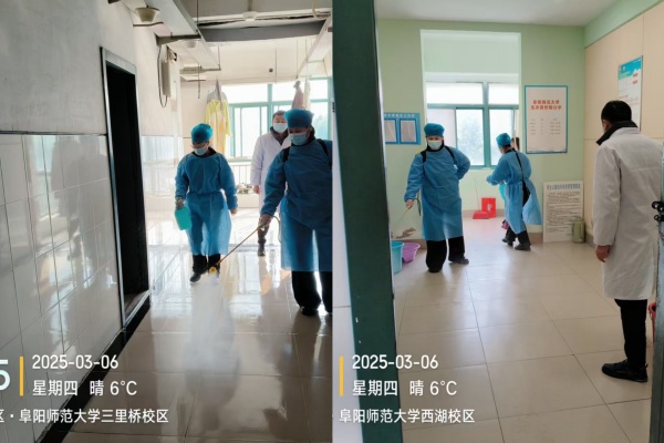 物业工作人员在校医院院长徐建周的指导下,严格按照消毒标准流程,配备专业的消毒设备和药剂,对全校学生寝室、洗衣房、水房、卫生间及公共区域进行了全方位、无死角的消毒处理,为师生们营造了一个安全、卫生、舒适的学习和生活环境,进一步提升了校园的整体卫生水平。